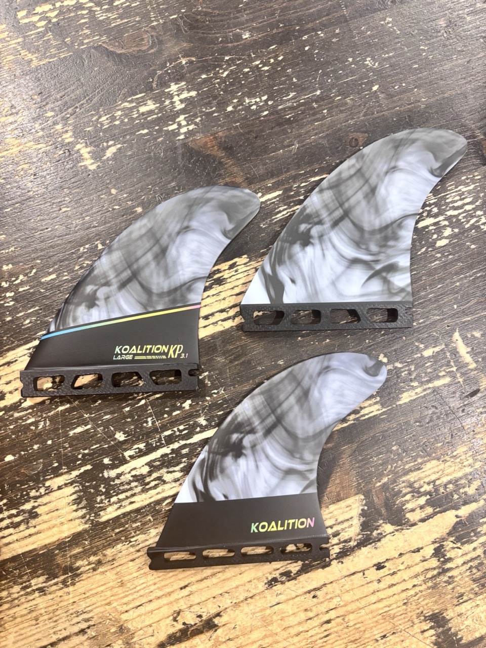 Scopri il modello Thruster KP3.1 di Koalition, progettato per offrire prestazioni ottimali in tutte le condizioni. Queste pinne sono appositamente progettate per i surfisti che cercano reattività e pivot per effettuare curve più strette.